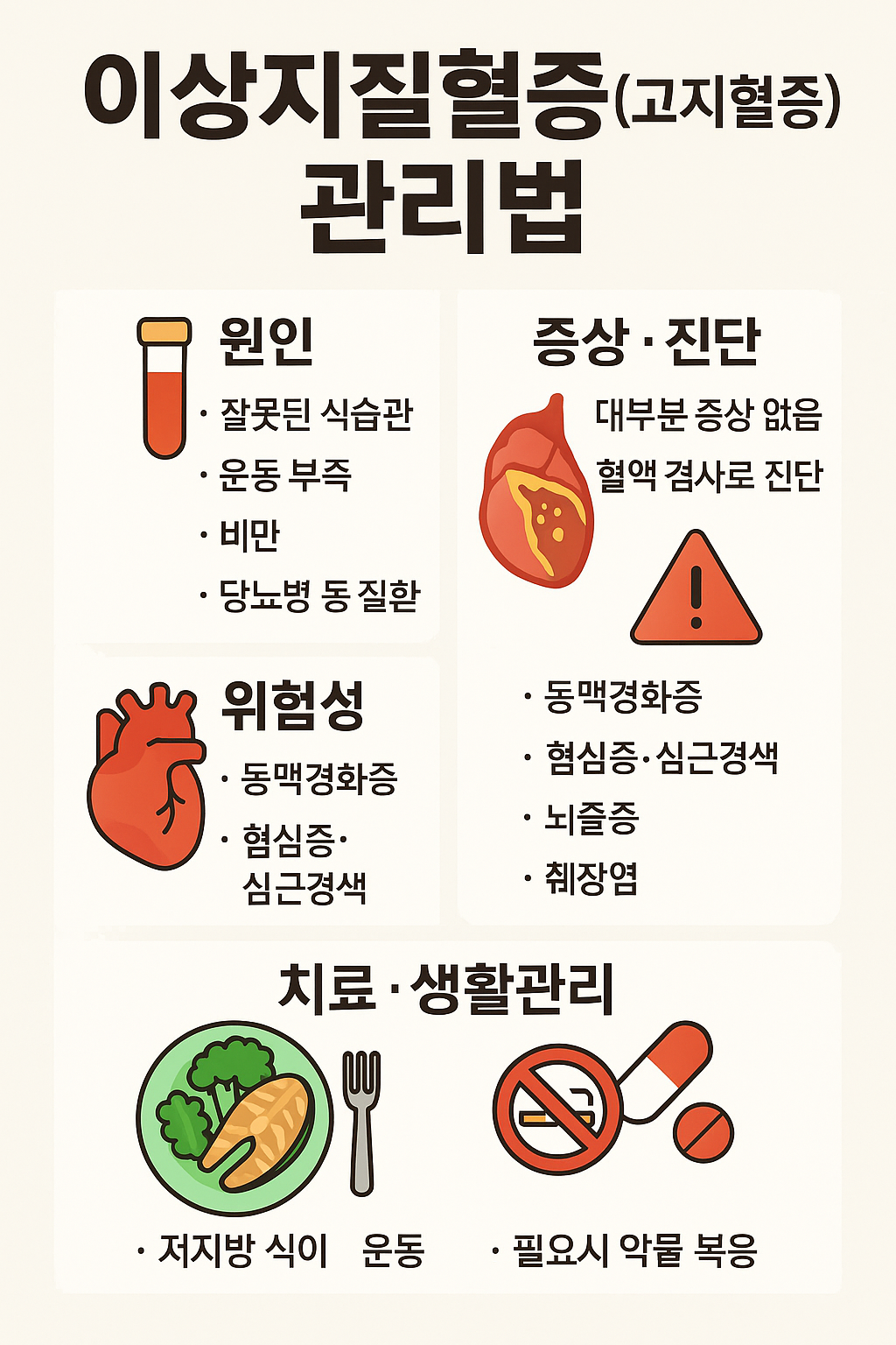 이상지질혈증은 초기에는 증상이 없어 방심하기 쉽지만, 장기적으로 심혈관질환의 주요 원인이 되는 위험한 상태입니다.